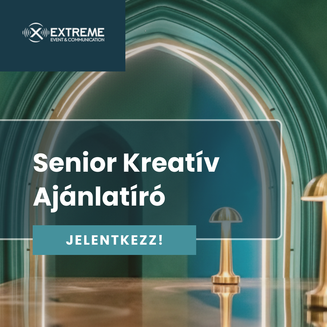 Az Extreme ügynökség Senior Kreatív Ajánlatírót keres, aki stratégiai gondolkodással, erős vizuális szemlélettel és inspiráló vezetői attitűddel vesz részt komplex kreatív projektek megvalósításában.